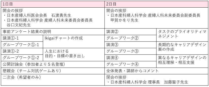 2日間のセミナーで自身の生きがいやキャリアデザインを完全に構築することは難しいですが、今回得た思考プロセスを定期的に繰り返すことで、参加一人ひとりの長期的なキャリアの明確化を図り、組織内での相互理解と支援を推進するきっかけを作りたいと考え、このセミナーを準備しました。さらに、本セミナーで生まれた参加者同士の意見交換や連携が、将来の産婦人科医療をより良い方向へ導くきっかけとなれば喜ばしい限りです。