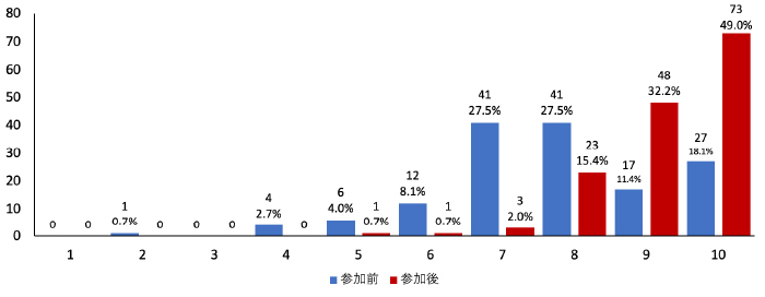 149/205名(72.7%)の参加者から回答を得ました。満足度は、全体的に高い評価を得ることが出来ました。